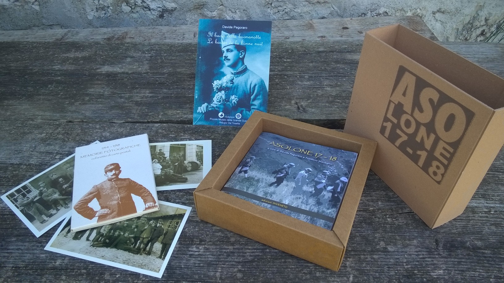 Per chi lo desiderasse, Il bacio della buonanotte è disponibile qui da noi, così come il cofanetto Asolone 17-18 (completo di dvd) che Davide ha curato insieme a Natalino Meneghin, e le carte postali Memorie Fotografiche 1914-1918.